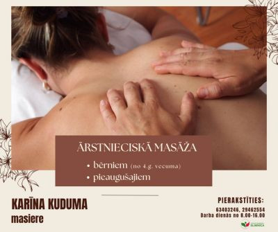 Ārstnieciskā masāža ir ne tikai fiziska terapija, bet arī process, kas uzlabo cilvēka pašsajūtu, emocionālo līdzsvaru un ķermeņa apzināšanos. Liepājas Reģionālās slimnīcas masāžas meistare AGITA AUZIŅA uzsver, ka būtiskākais ir līdzsvars: “Tad, kad cilvēks jūtas līdzsvarā, viņš arī atbrīvojas. Ir svarīgi ieklausīties savā ķermenī – sajust, kur sāp, kur ir spriedze, un ļaut sev to pamanīt. Tas ir gan ārstniecības process, gan darbs ar cilvēku kopumā – ķermeni, sajūtām un uzticēšanos,” saka Agita Auziņa.
