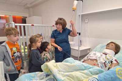Pirmdien, 6. oktobrī, Liepājas Reģionālajā slimnīcā notika pirmā “Jauno mediķu skolas” nodarbība, kas arī šogad skolēniem sniedz iespēju iepazīt medicīnas nozari gan teorētiski, gan praktiski – slimnīcas reālajā darba vidē. Šo programmu, kas aizsākās pagājušajā gadā, īsteno Liepājas Valsts ģimnāzija sadarbībā ar slimnīcas medicīnas speciālistiem, kuri ar savu pieredzi papildina un bagātina mācību saturu.