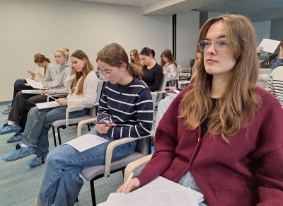 Pirmdien, 6. oktobrī, Liepājas Reģionālajā slimnīcā notika pirmā “Jauno mediķu skolas” nodarbība, kas arī šogad skolēniem sniedz iespēju iepazīt medicīnas nozari gan teorētiski, gan praktiski – slimnīcas reālajā darba vidē. Šo programmu, kas aizsākās pagājušajā gadā, īsteno Liepājas Valsts ģimnāzija sadarbībā ar slimnīcas medicīnas speciālistiem, kuri ar savu pieredzi papildina un bagātina mācību saturu.