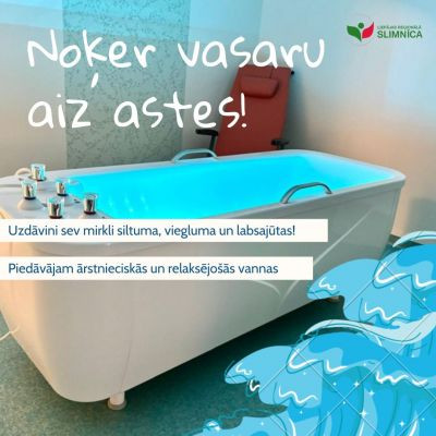 Pat ja rudens jau sāk krāsot lapas, mēs aicinām ļauties patīkamām ūdens procedūrām Liepājas Reģionālās slimnīcas Ambulatorajā fizikālās terapijas un rehabilitācijas nodaļā, kas piedāvā plašu ūdens procedūru klāstu gan ārstniecības, gan profilakses nolūkos.