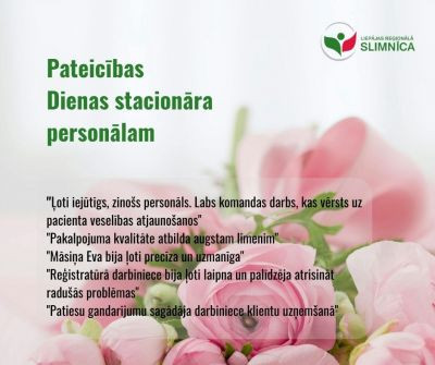 Liepājas Reģionālās slimnīcas Dienas stacionāra pacienti dalījušies ar savu pieredzi, uzsverot gan augsto pakalpojumu kvalitāti, gan atsaucīgo personālu. Atsauksmes liecina, ka šajā nodaļā pacienti jūtas gan aprūpēti, gan droši, gan uzklausīti.