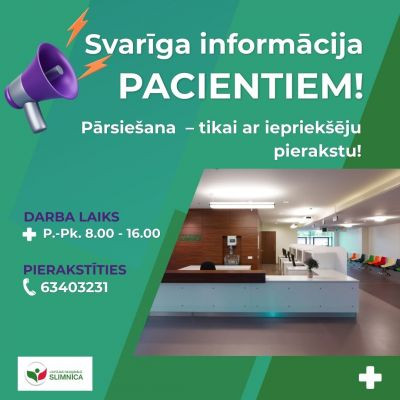 Ņemot vērā šobrīd ļoti lielo akūto traumatoloģijas profila pacientu pieplūdumu, Liepājas Reģionālā slimnīca ir pieņēmusi lēmumu laika posmā no 2026. gada 2. marta līdz 6. martam pārcelt traumatoloģijas pacientiem ieplānotās plānveida operācijas uz vēlāku laiku.