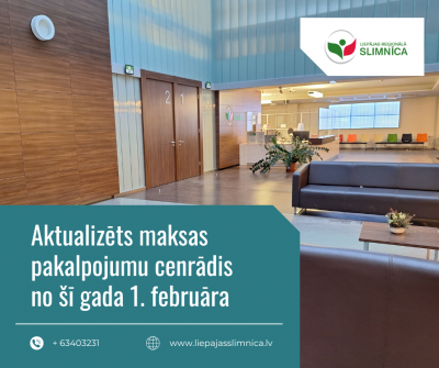 No 2026. gada 1. februāra stājas spēkā atjaunots maksas pakalpojumu cenrādis. Vienlaikus esam paplašinājuši Fizikālās terapijas un rehabilitācijas nodaļas pakalpojumu klāstu, piedāvājot vairāk iespēju gan bērniem, gan pieaugušajiem.